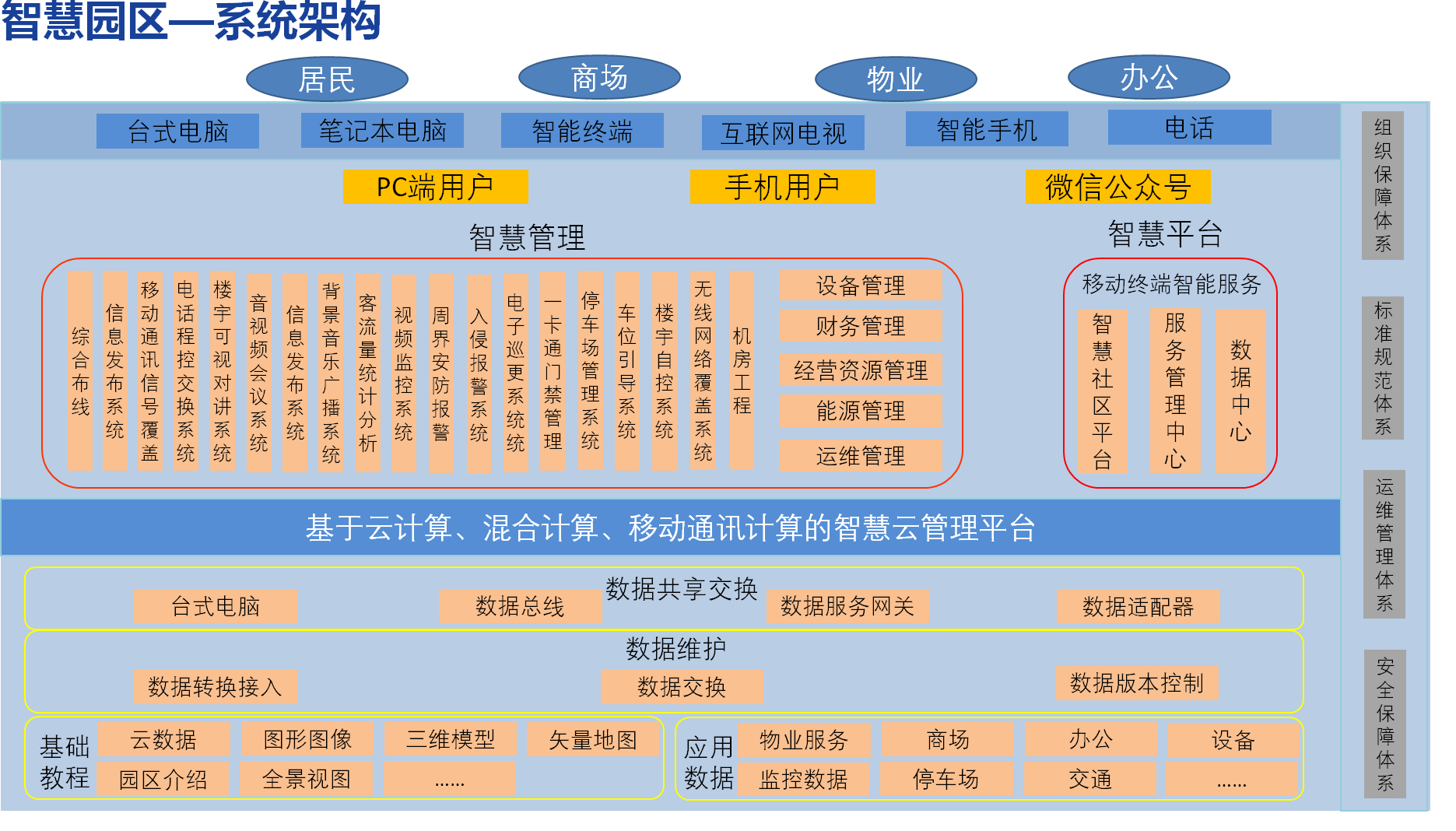 park)是指在各类产业园区、集聚区和经济技术开发区、功能区等区域内,按照科学的园区发展理念,以新一代信息技术和智慧应用为支撑,在泛在信息全面感知和互联的基础上,全面整合园区内外的资源,实现人、物、园区功能系统之间无缝连接与协同联动的智能自感知、自适应、自优化,从而对民生、环保、公共安全、园区功能、商务活动等多种园区需求做出智能的响应,形成具备可持续生命力的安全、便捷、高效、绿色的园区形态,使园区管理服务等更高效便捷,实现基础设施网络化、开发管理信息化、功能服务精细化和产业发展智能化。